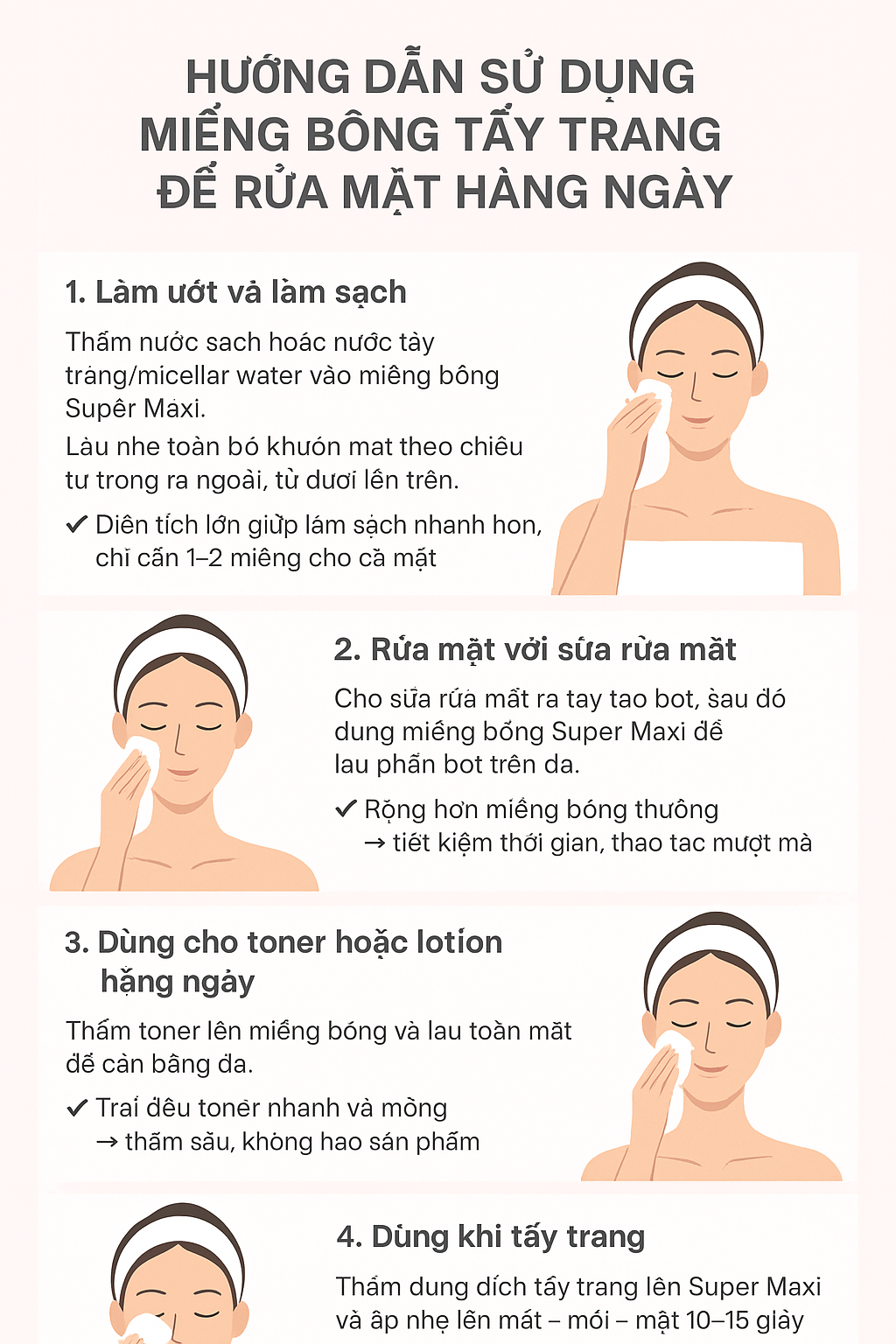Hướng dẫn sử dụng Bông tẩy trang Ikami Super Maxi